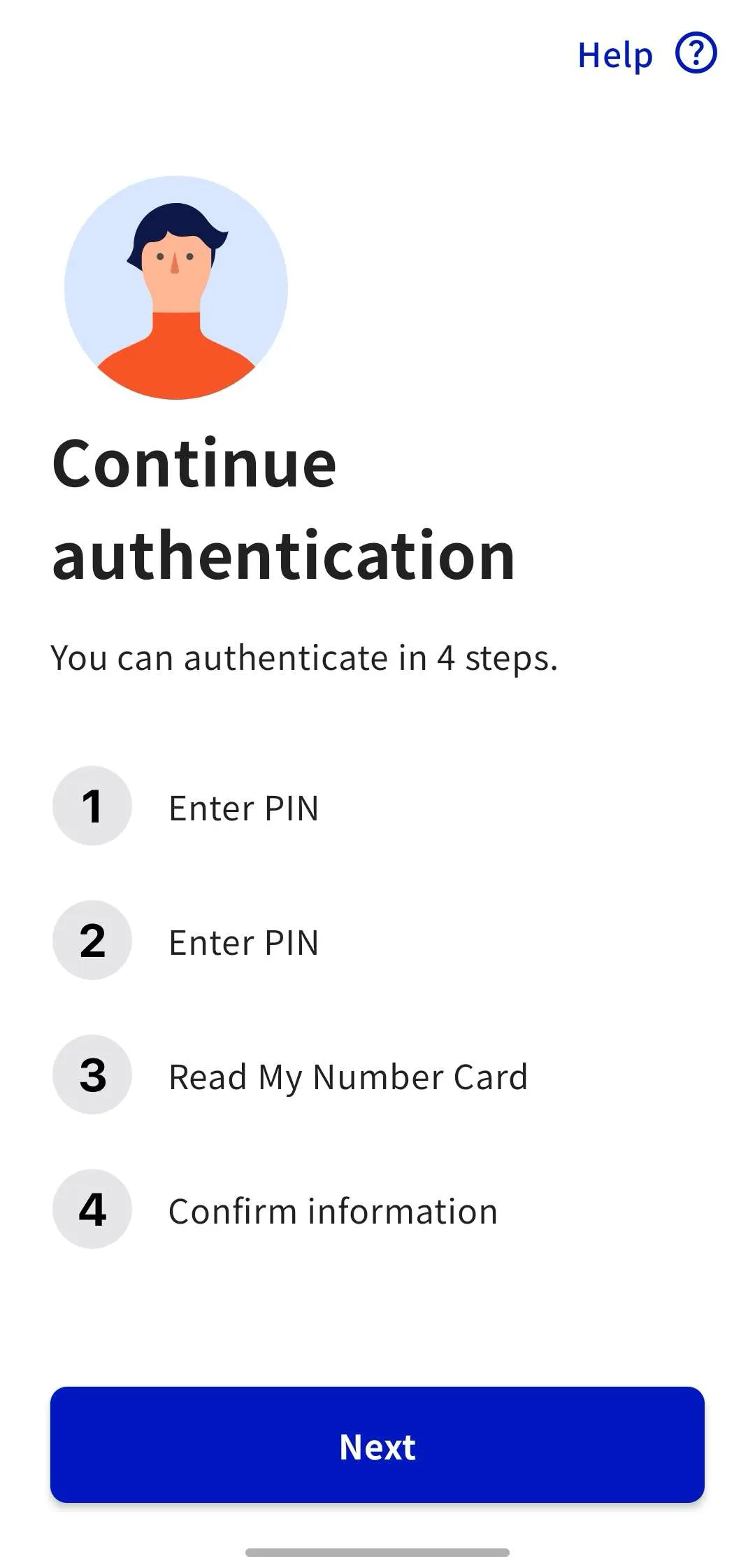2. Tap “Verify identity with My Number Card” This will redirect you to the Digital Identification App. If the authentication steps menu appears, the process is working correctly.
