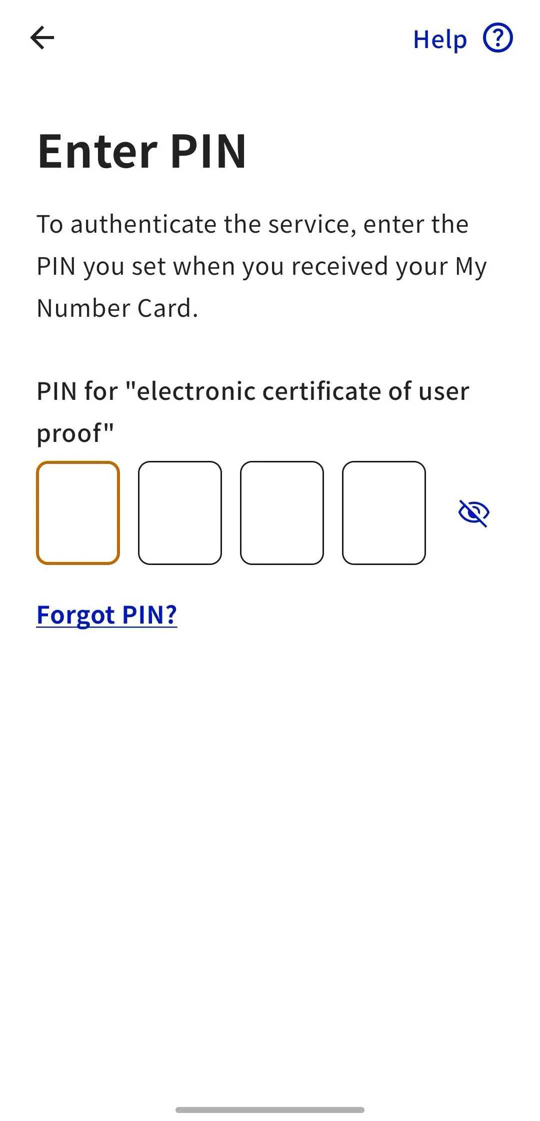 2. If you have forgotten your PIN or it has been locked, you need to go to the office of the municipality where you are registered to have it initialized and reset. For details, please check the My Number Card General Portal Site FAQ “Q10 I do not know the PIN for my Individual Number Card. What should I do?”.
