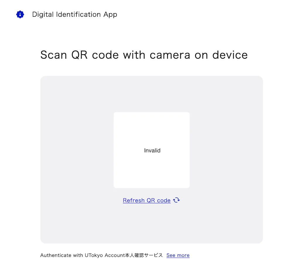 If the Digital Identification App is not installed, a screen will prompt you to install it. Depending on your browser’s display zoom settings, the system may detect the access as coming from a PC and display a QR code instead. In either case, please return to Step 1 to install and register the Digital Identification App.