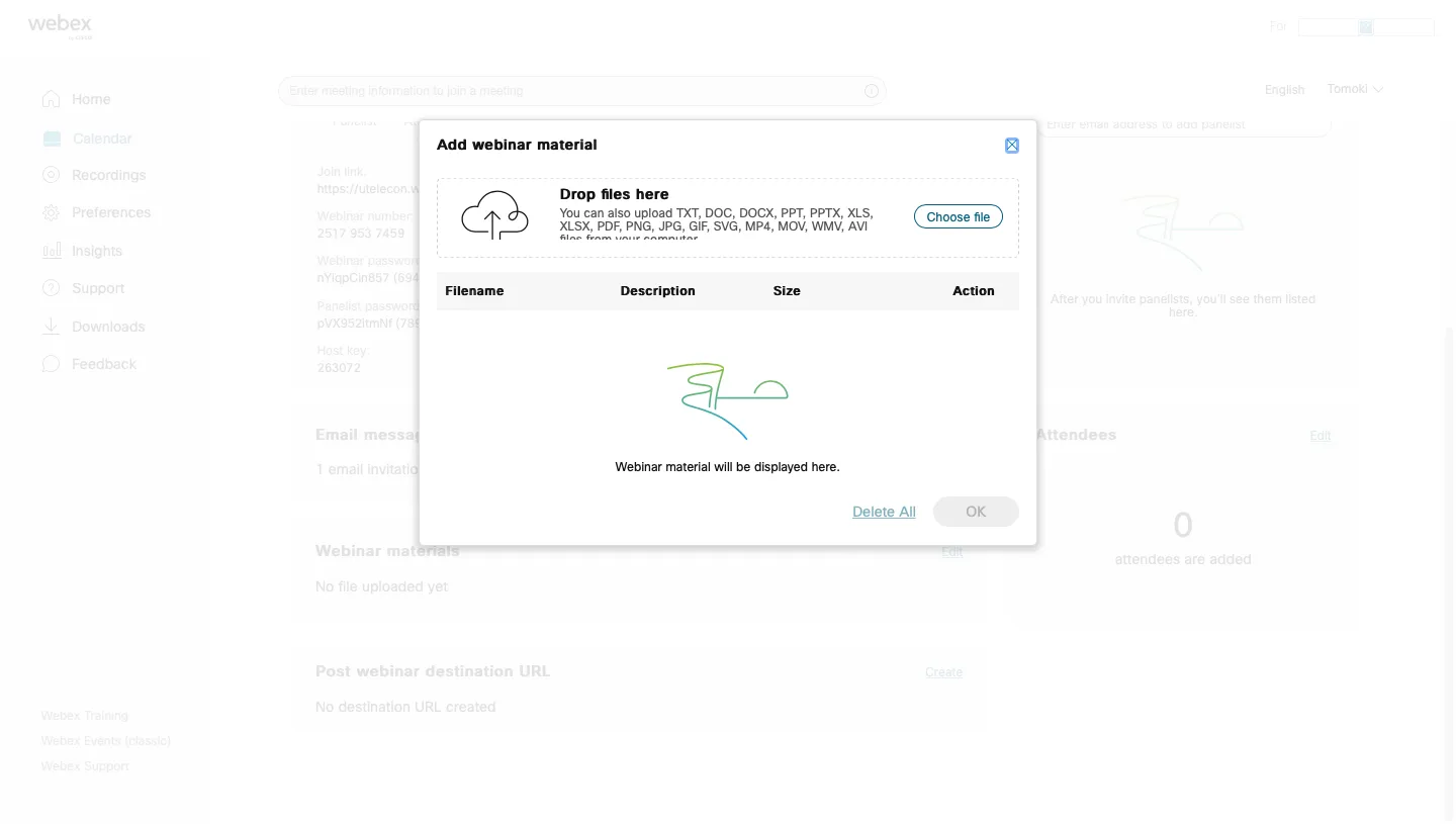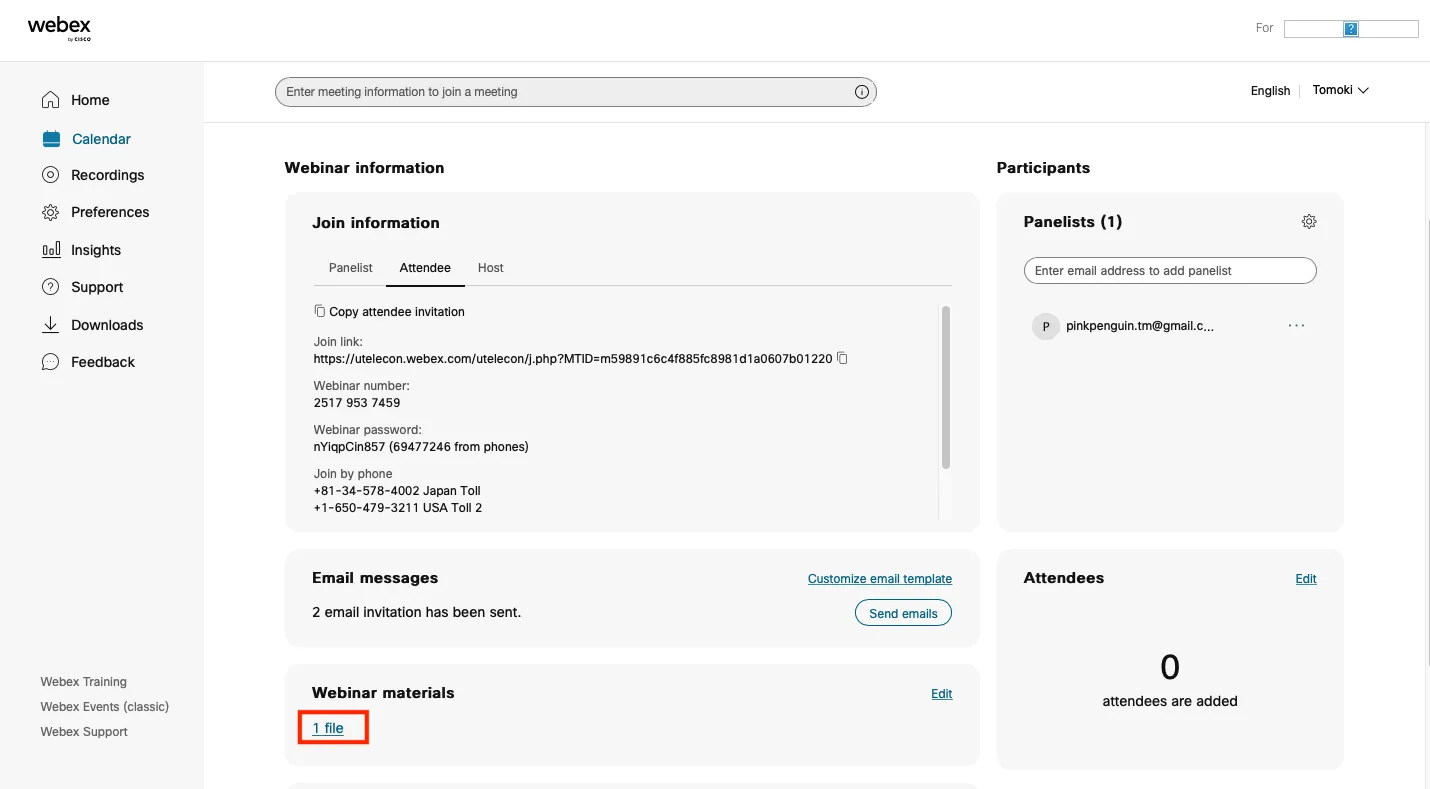 You can attach materials to the webinar and share them with participants.