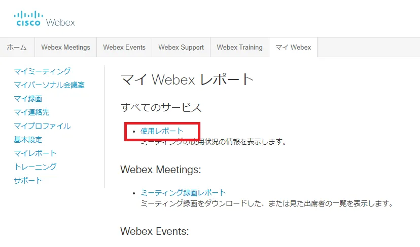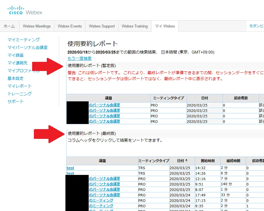 4. A list of meetings will be displayed. If it is displayed in the “Usage summary report (provisional version)”, a proper report has not been generated yet. Please wait for it to be displayed in the “Usage Summary Report (final version)”. Click on the agenda name.