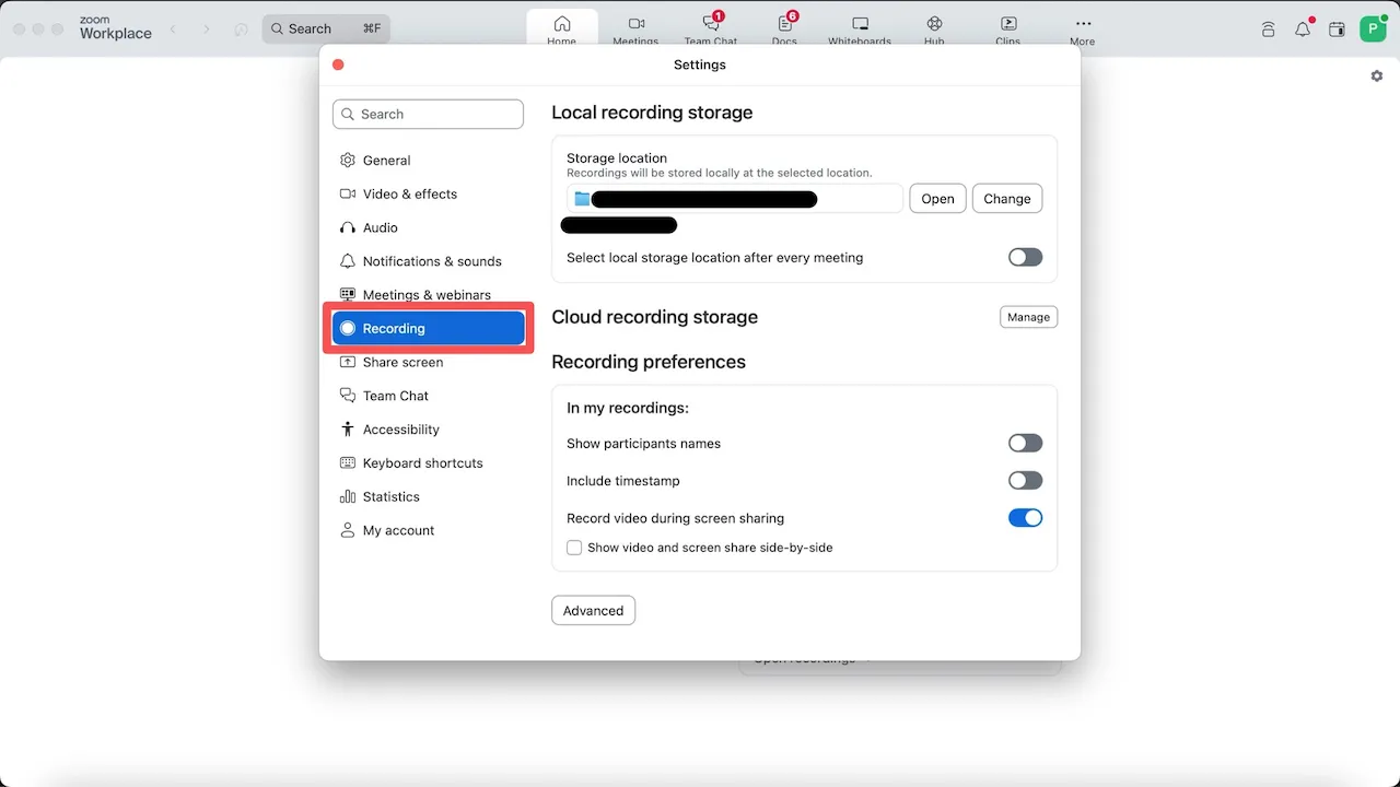 3. Enable “Record video during screen sharing”.