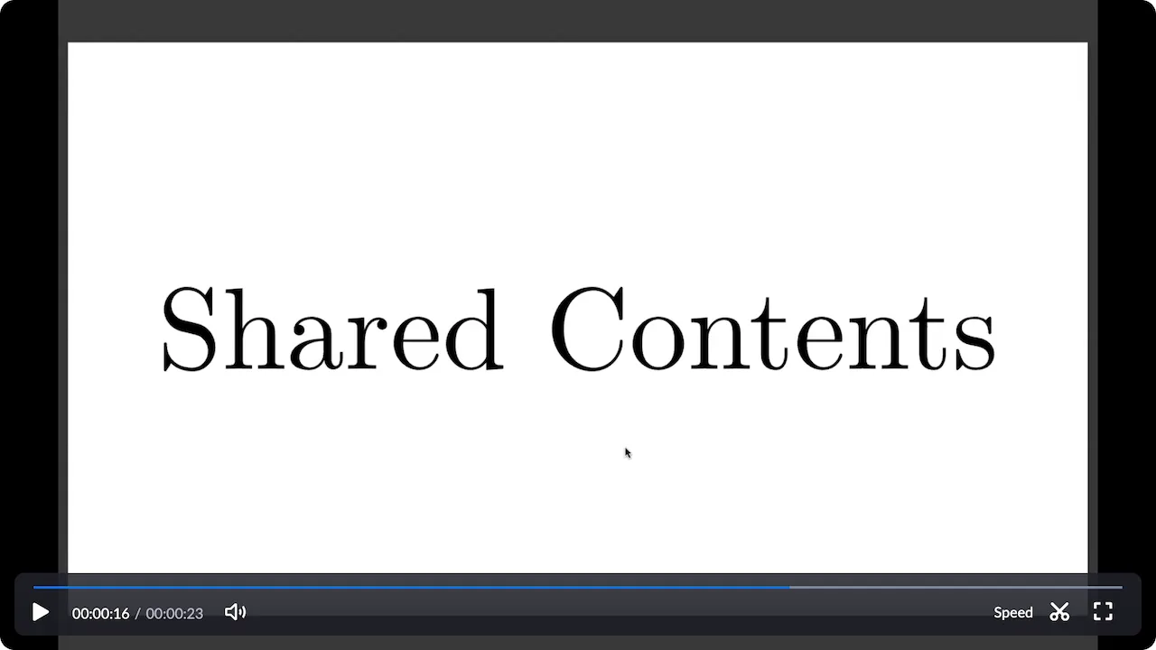 When a participant shares their screen during the meeting, the shared content is also recorded. The layout of recordings that include shared content varies depending on the settings configured in advance by the recorder, and can be broadly categorized into the following two types. Note that the layout of participants’ videos in the recording follows the recorder’s display settings for the participants’ videos during the meeting.