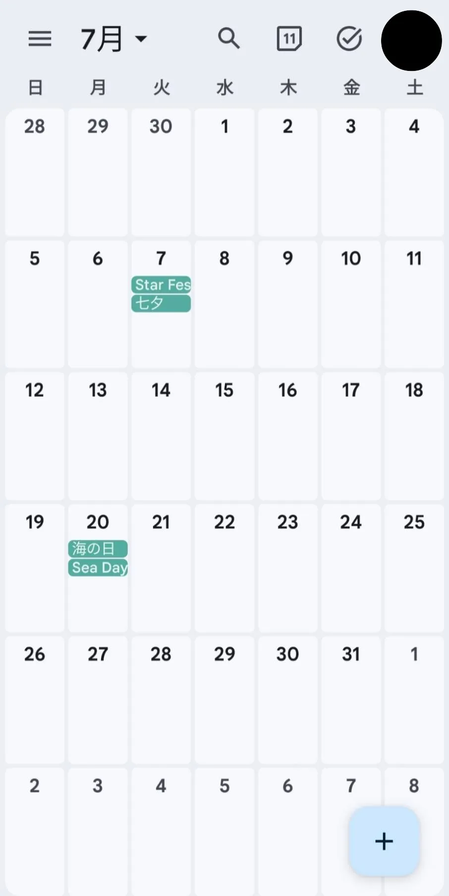 複数Googleアカウントを持っている場合,ここを押すことでアカウントを変更できます.アカウントを変更すると,そのアカウントのカレンダーに切り替わります.