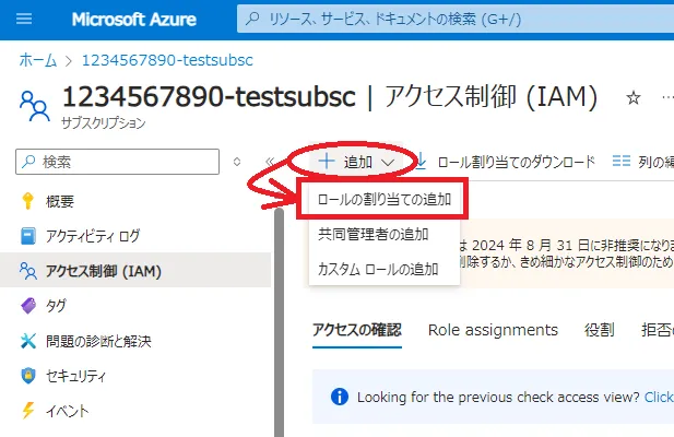 +追加をクリックし,ロールの割り当ての追加を選択して下さい.