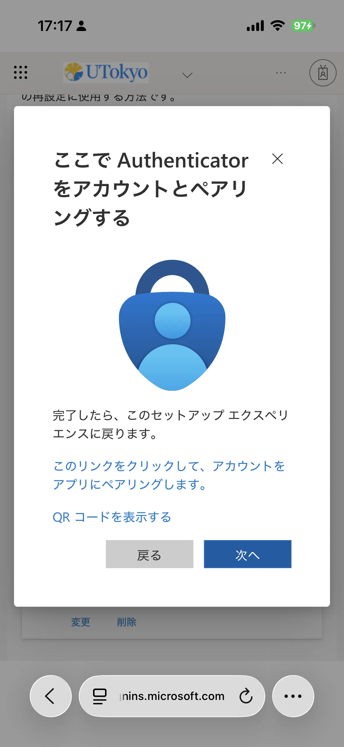 ※「Microsoft Authenticator アプリを現在使用できません」の表示について