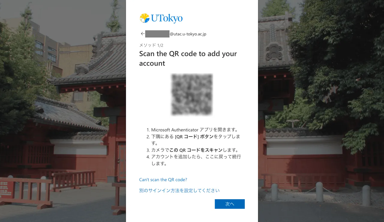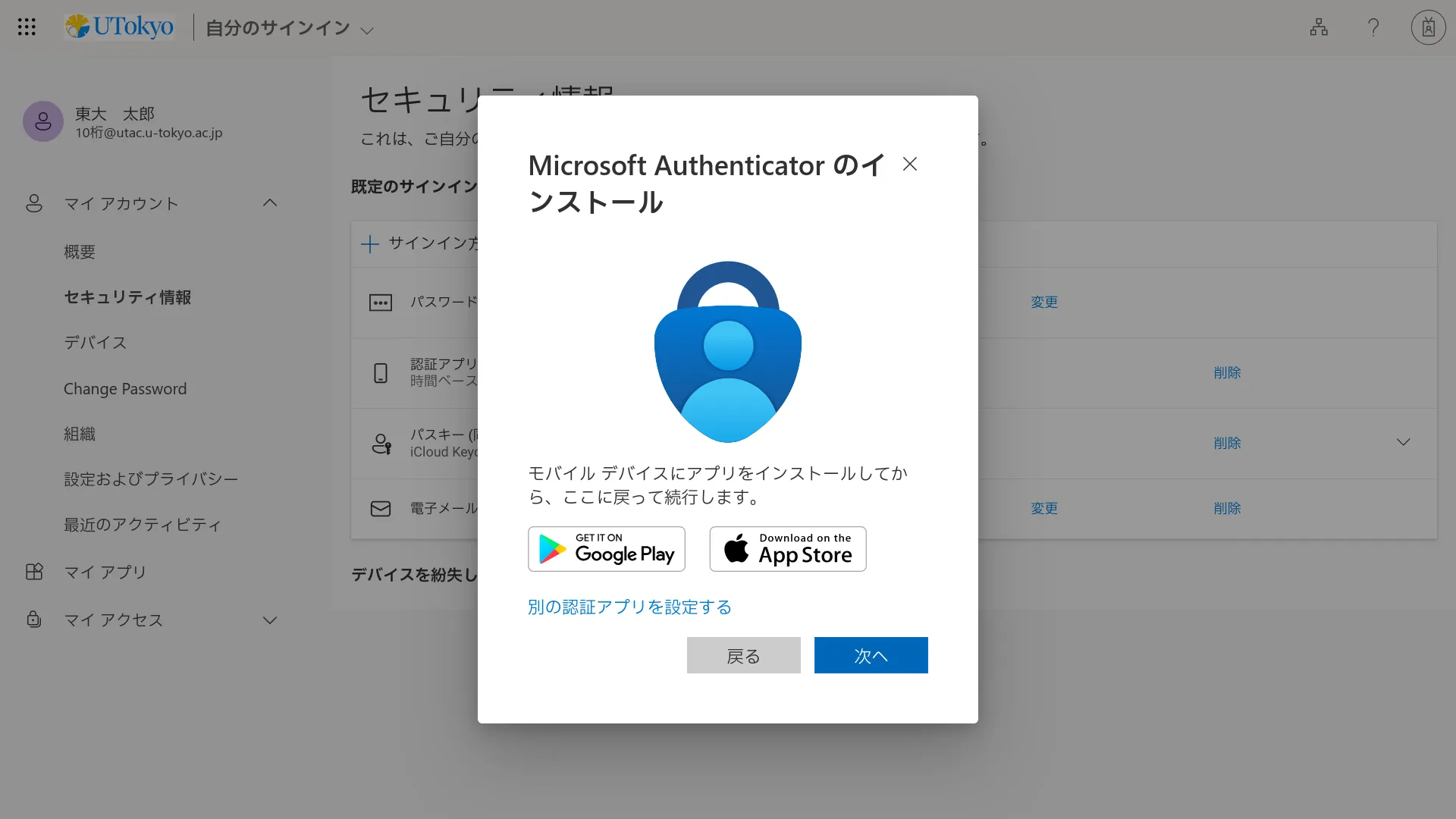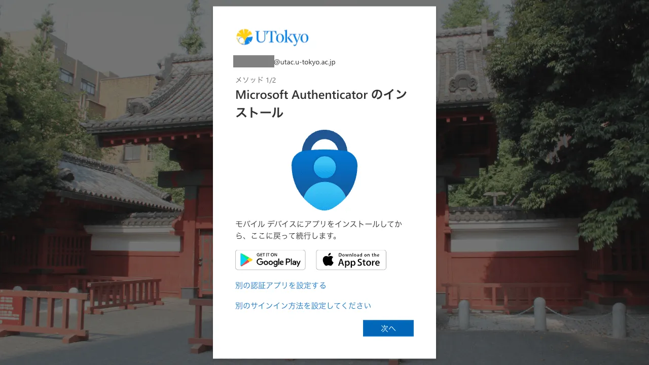「Microsoft Authenticator」は,Microsoftが提供している多要素認証のための専用のアプリです.UTokyo Accountの多要素認証はMicrosoftのシステムを利用しているため,他の認証アプリよりスムーズに利用できます.2台以上のスマホを持っている場合は,2台目以降のスマホにインストールした「Microsoft Authenticator」を追加の本人確認方法として,手順2で登録することもできます.