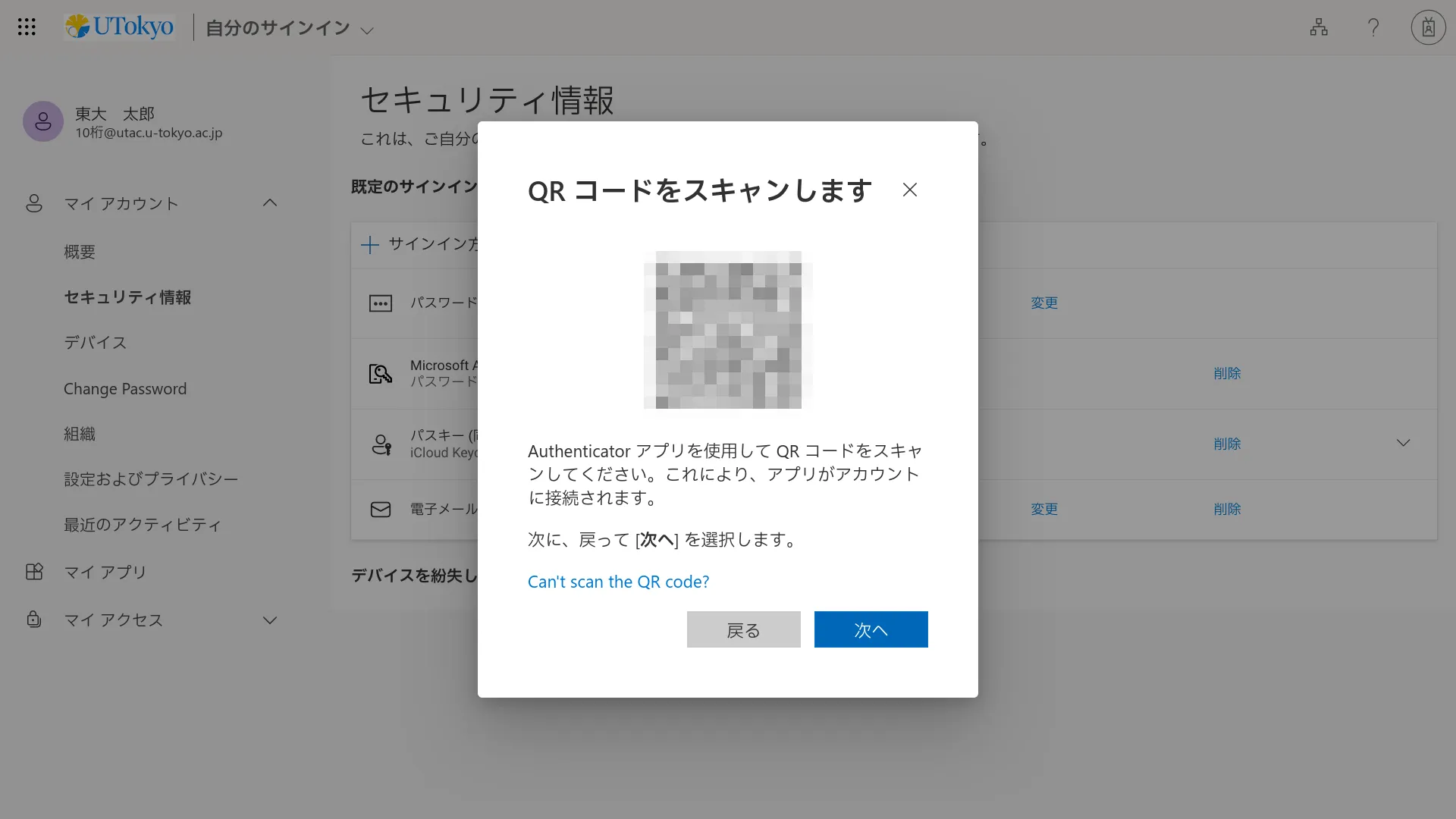 6. 「セキュリティ情報」と書かれた多要素認証の設定ページが表示されればOKです.