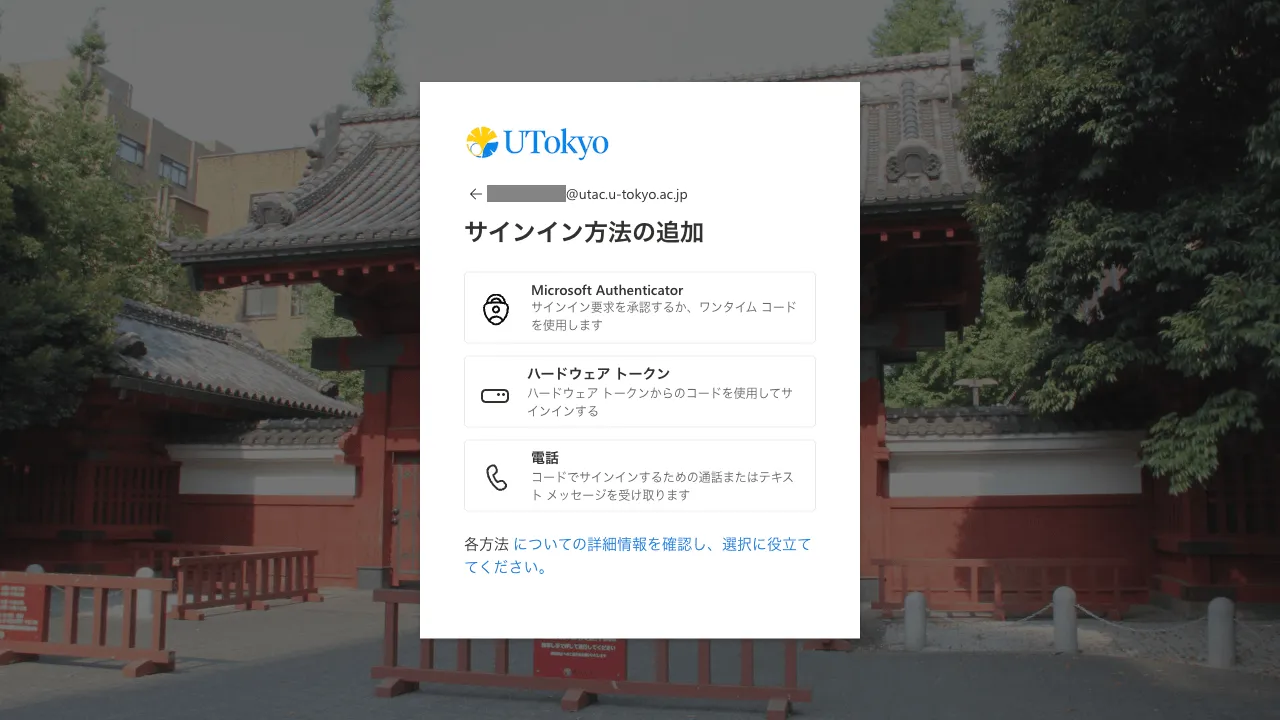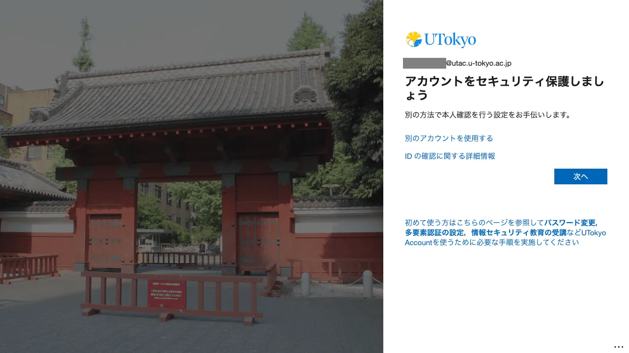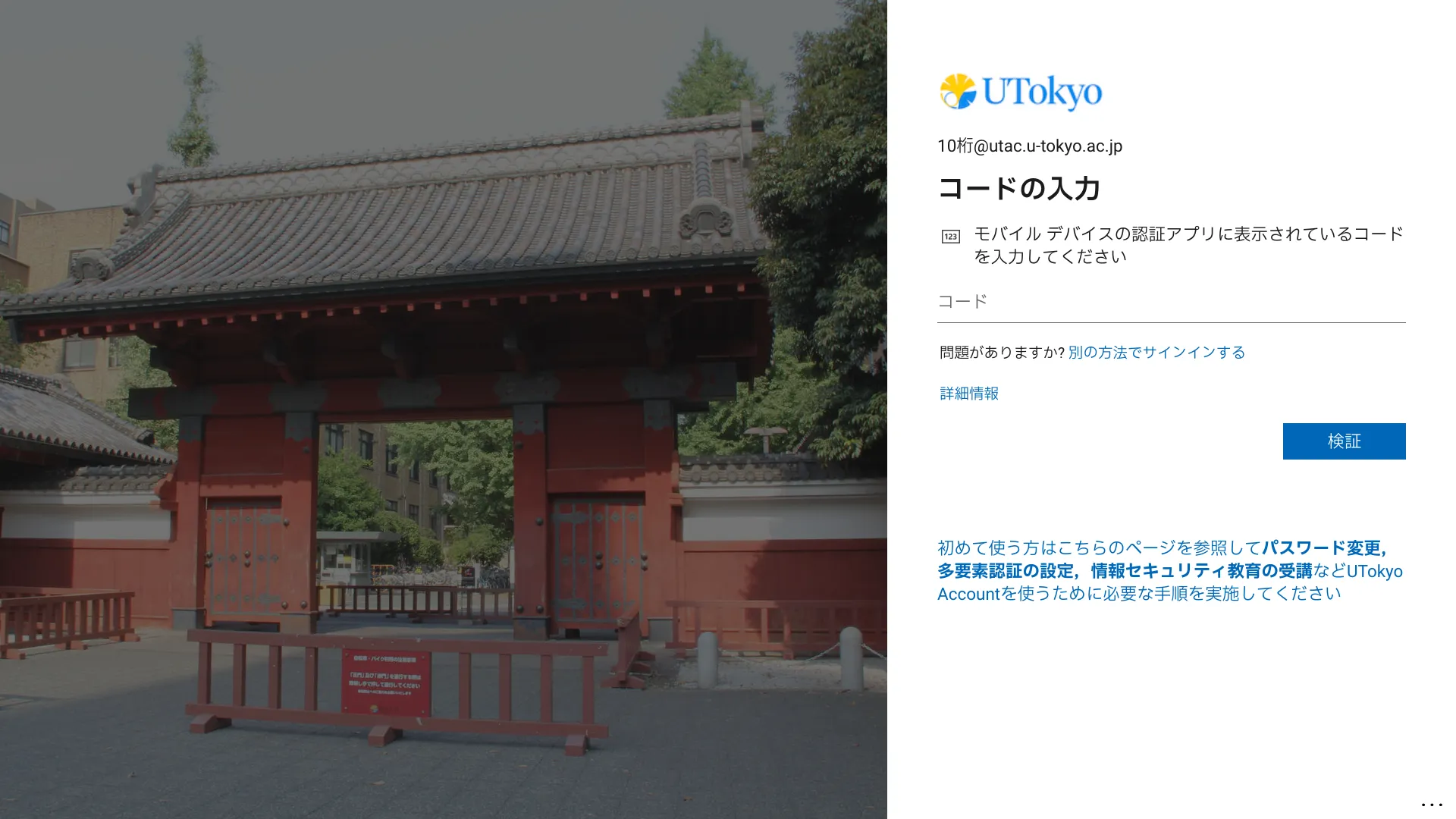 2. UTokyo Account(数字10桁の共通ID + @utac.u-tokyo.ac.jp)とパスワードを入力してログインしてください.