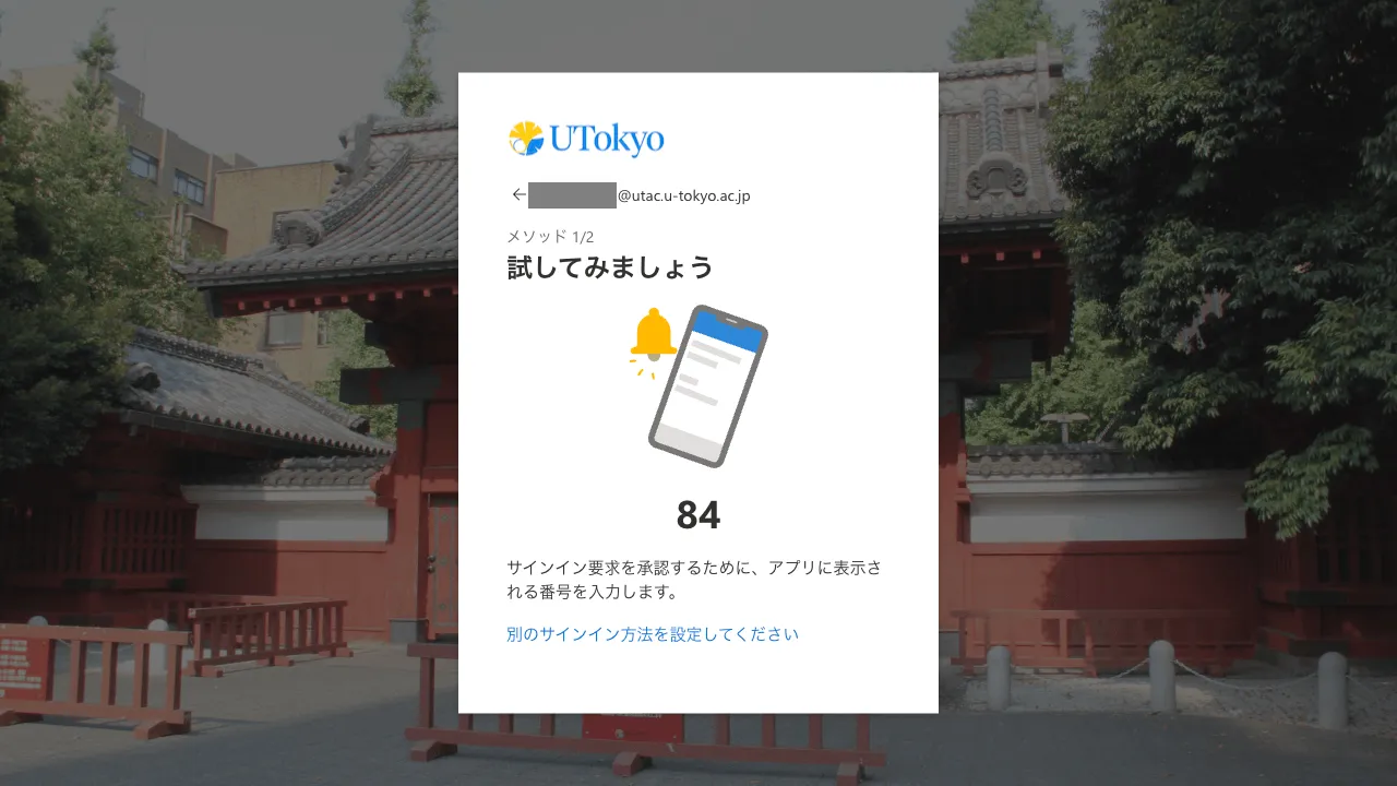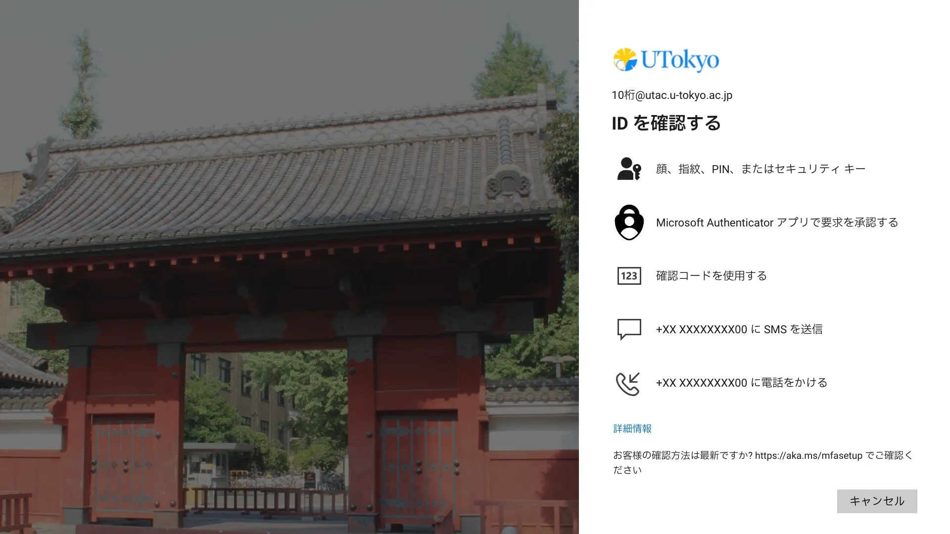 次に,ここまでに登録した本人確認方法を利用してUTokyo Accountにサインインすることができるか確認します.